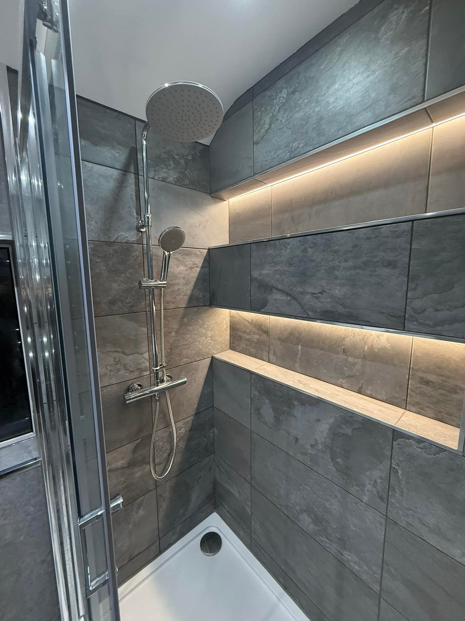 This project involved fully updating an inherited, outdated bathroom into a modern, custom-designed shower room. Mark and Darren collaborated closely with the homeowner, bringing their specific vision for the new space to life through expert plumbing and fitting.